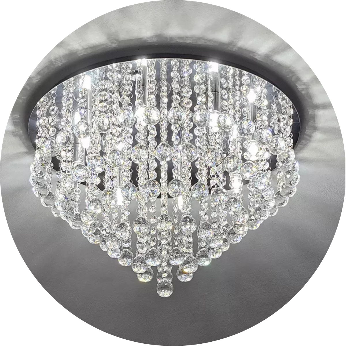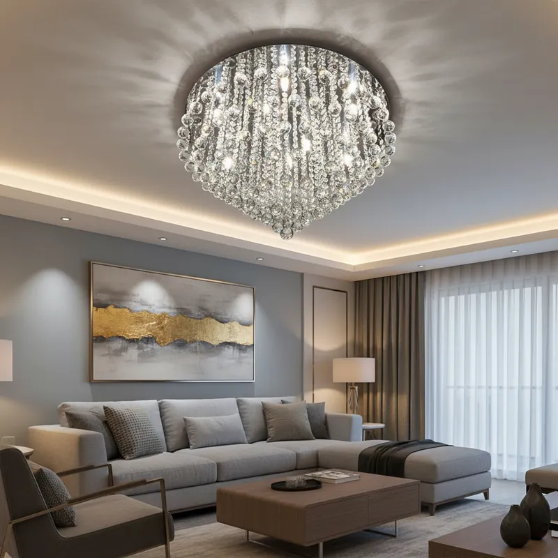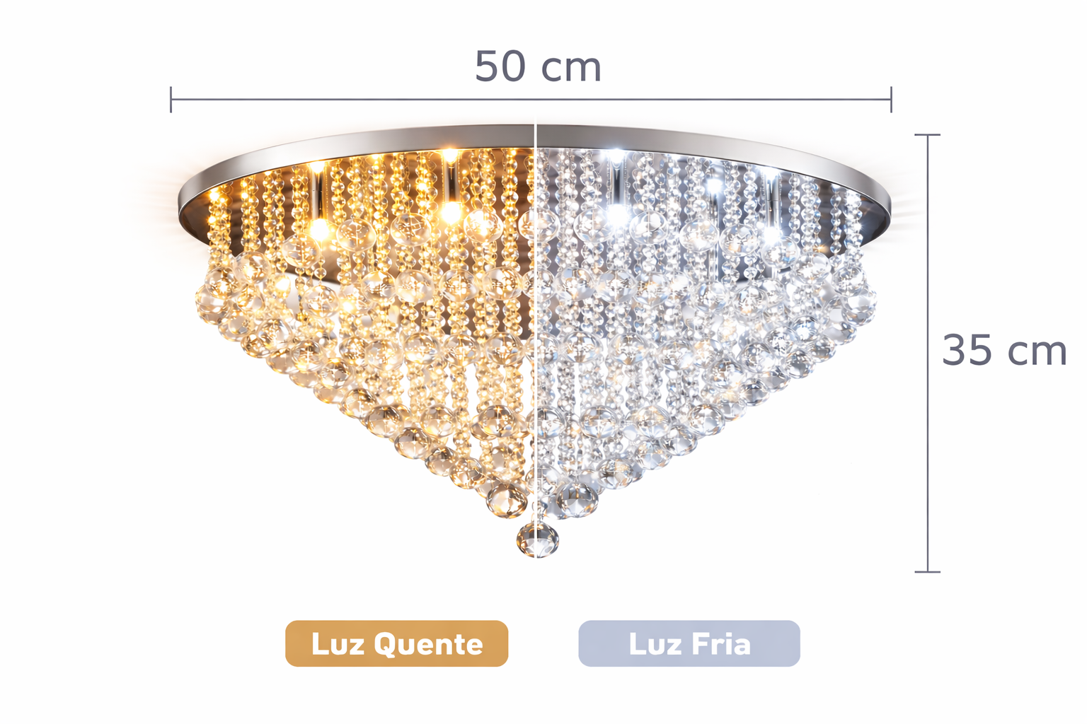 Com base prateada e cristais translúcidos de alto brilho, proporciona um efeito luminoso sofisticado, deixando o ambiente mais aconchegante e refinado.