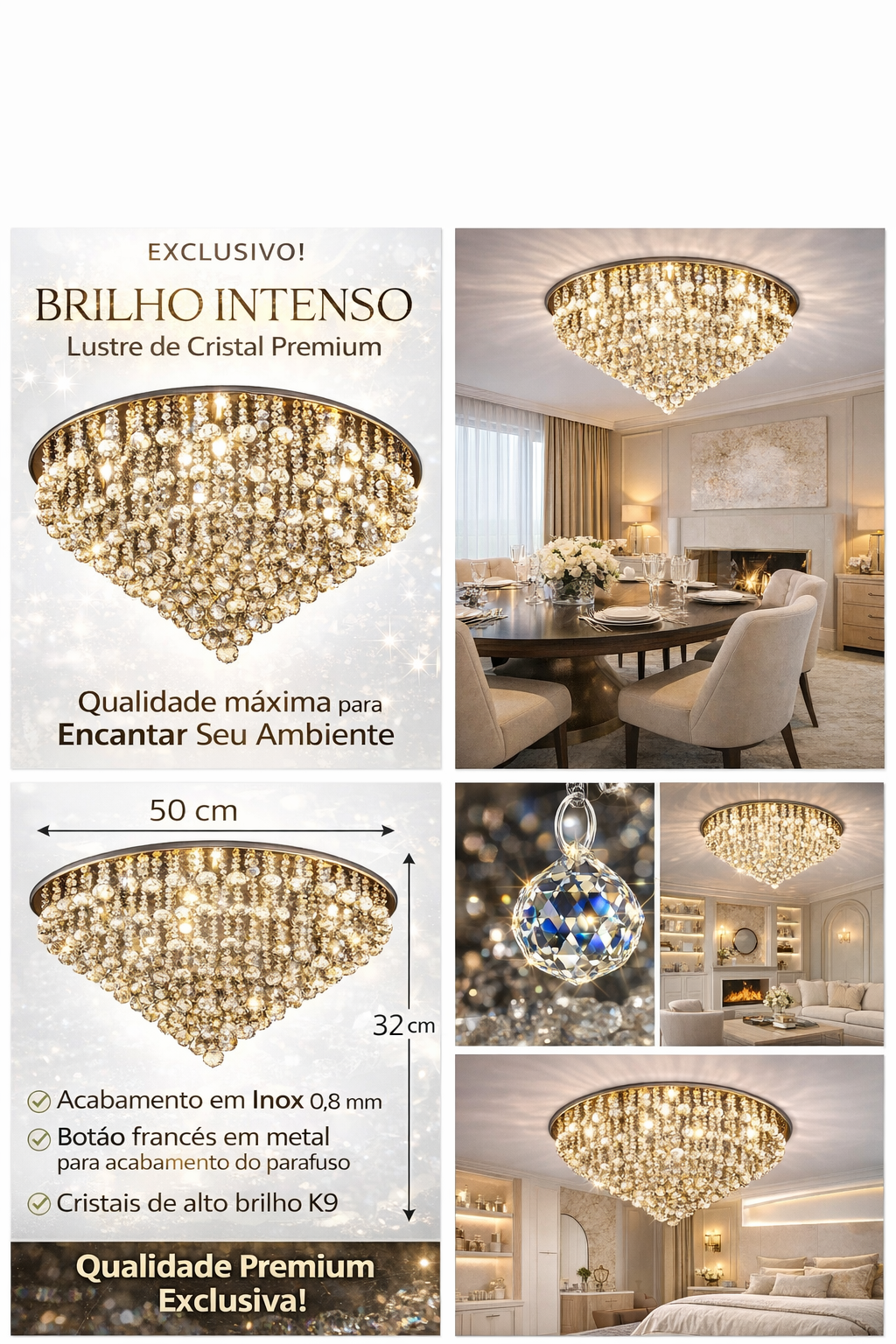 Ideal para quem busca qualidade, durabilidade e um produto que realmente valorize o ambiente. Um lustre pensado para trazer requinte, brilho e sofisticação ao seu espaço.