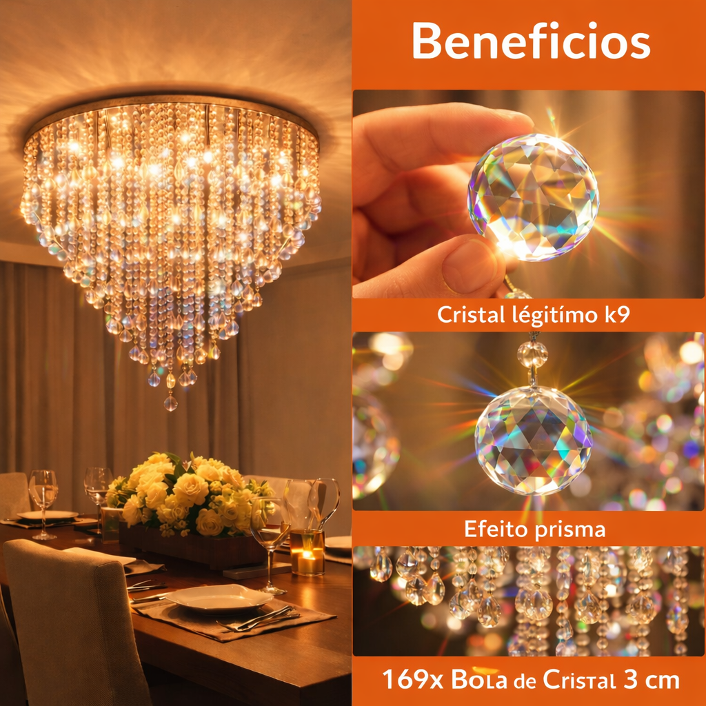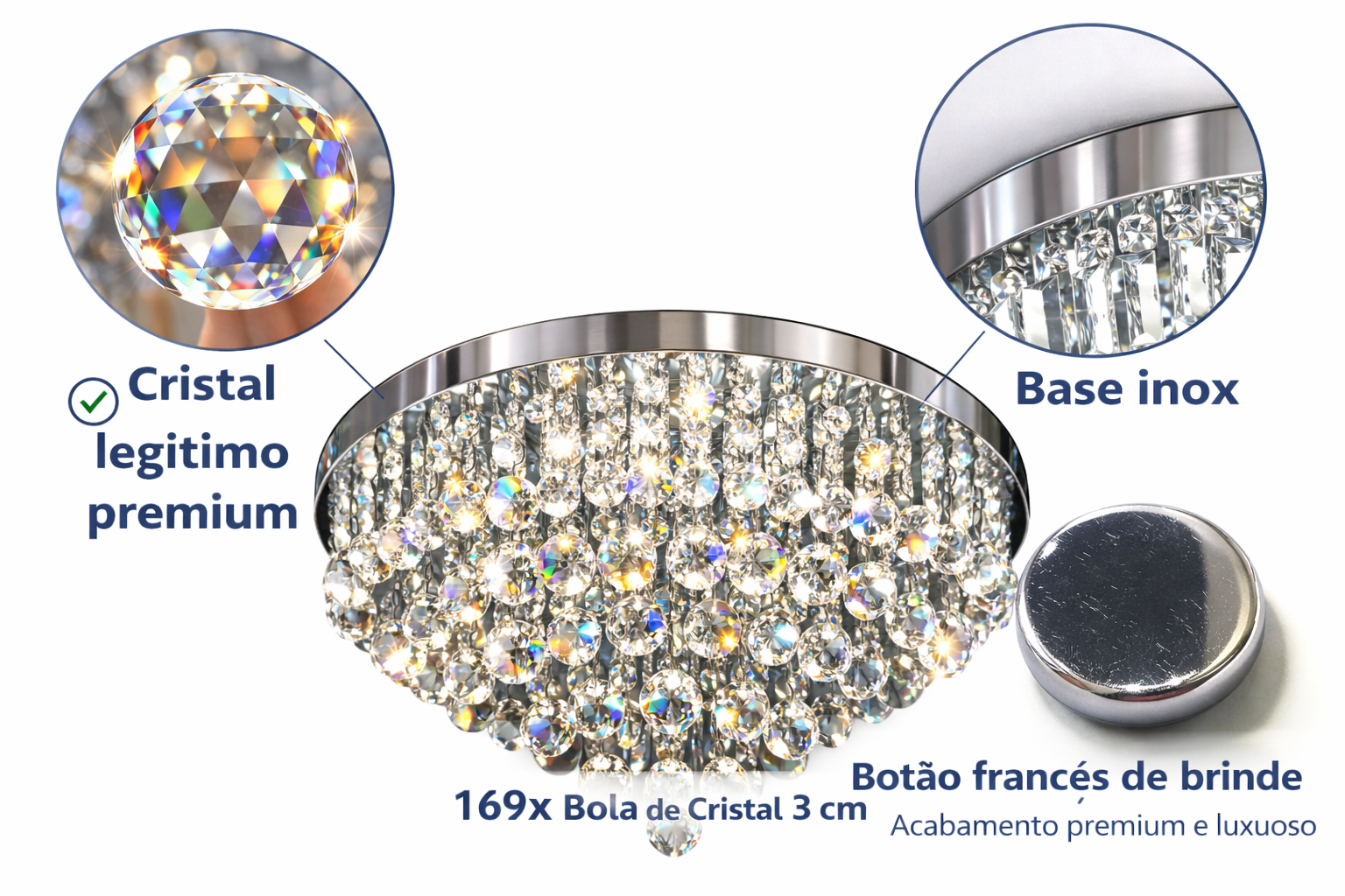 Com base prateada e cristais translúcidos de alto brilho, proporciona um efeito luminoso sofisticado, deixando o ambiente mais aconchegante e refinado.