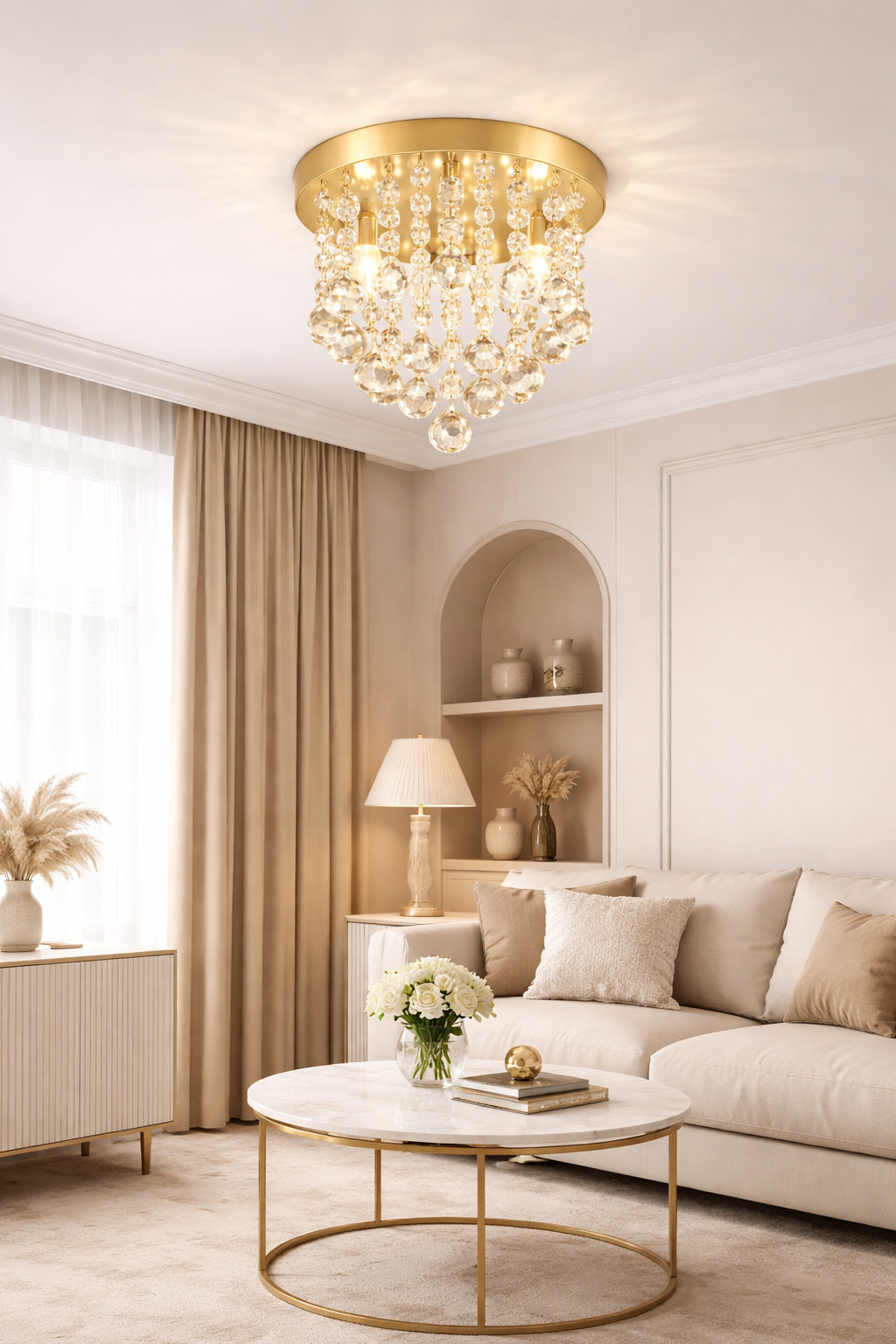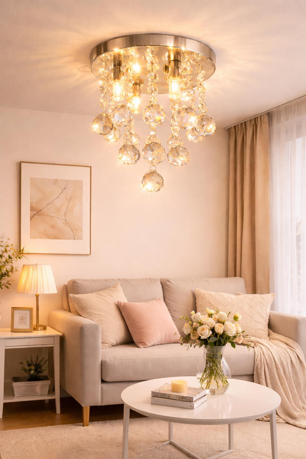 Com base prateada e cristais translúcidos de alto brilho, proporciona um efeito luminoso sofisticado, deixando o ambiente mais aconchegante e refinado.