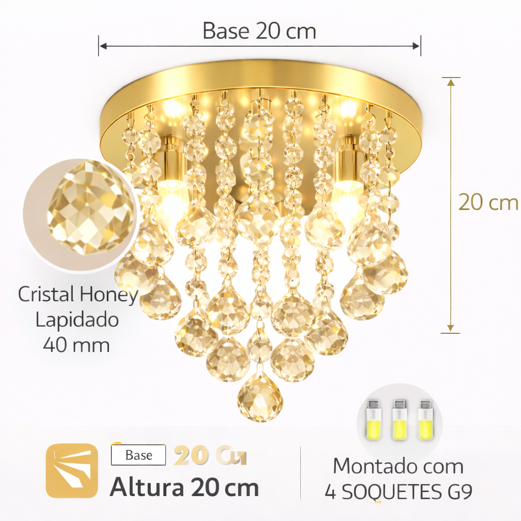 Lustre Dourado Cristal Legítimo Champanhe 20 cm Lâmpadas G9