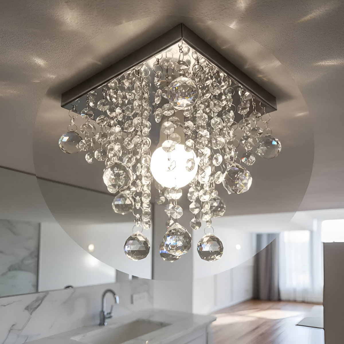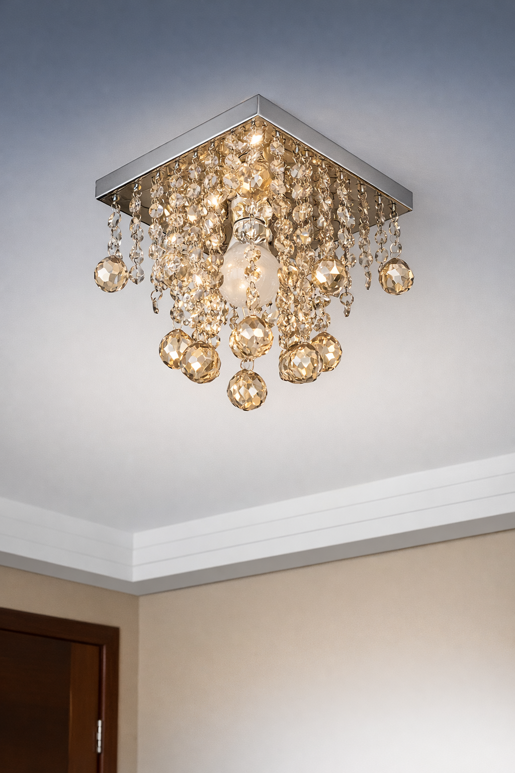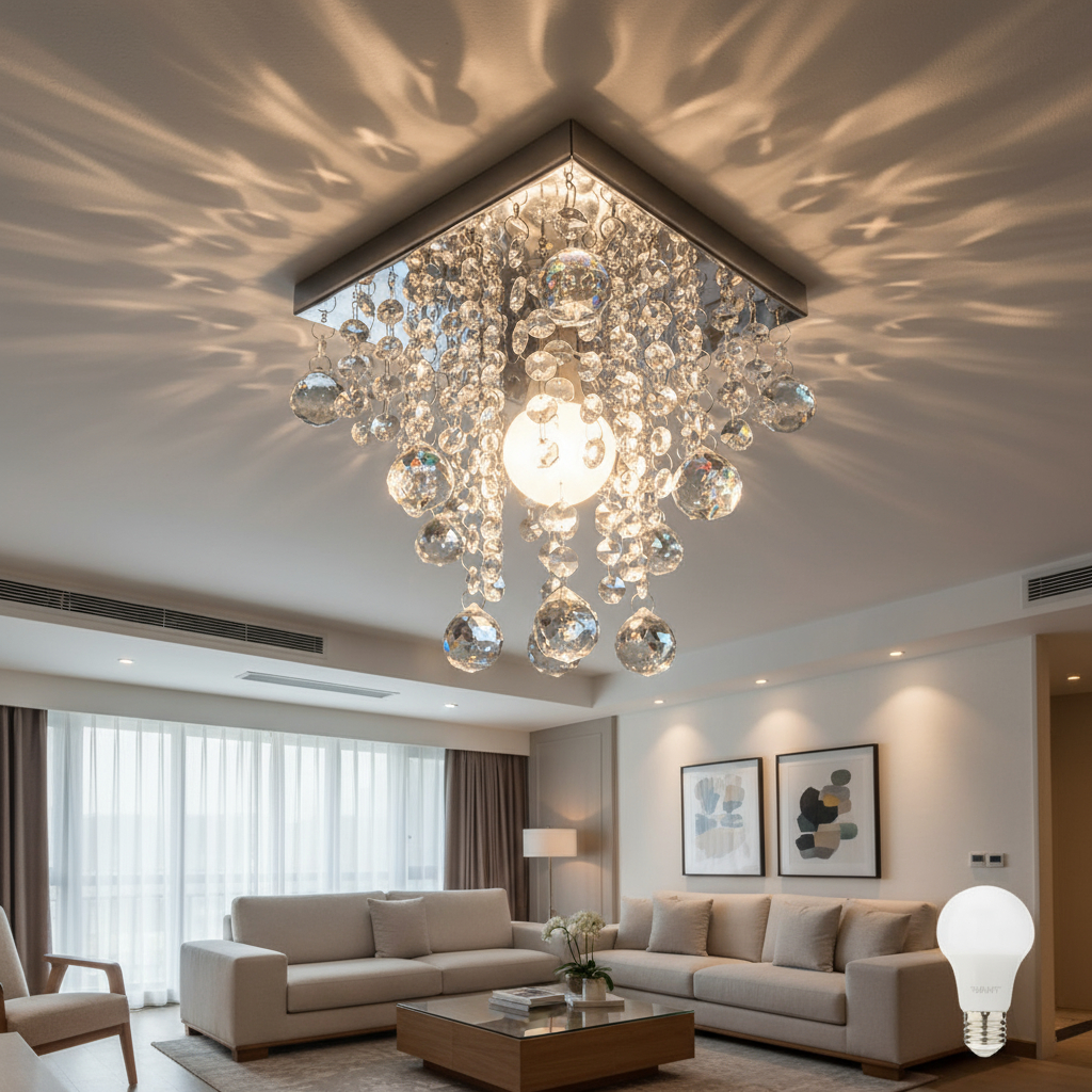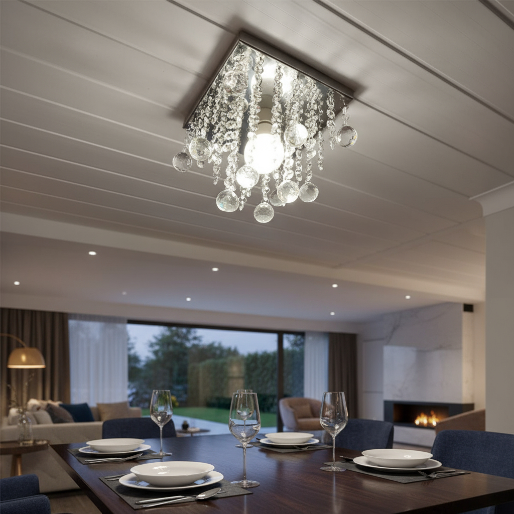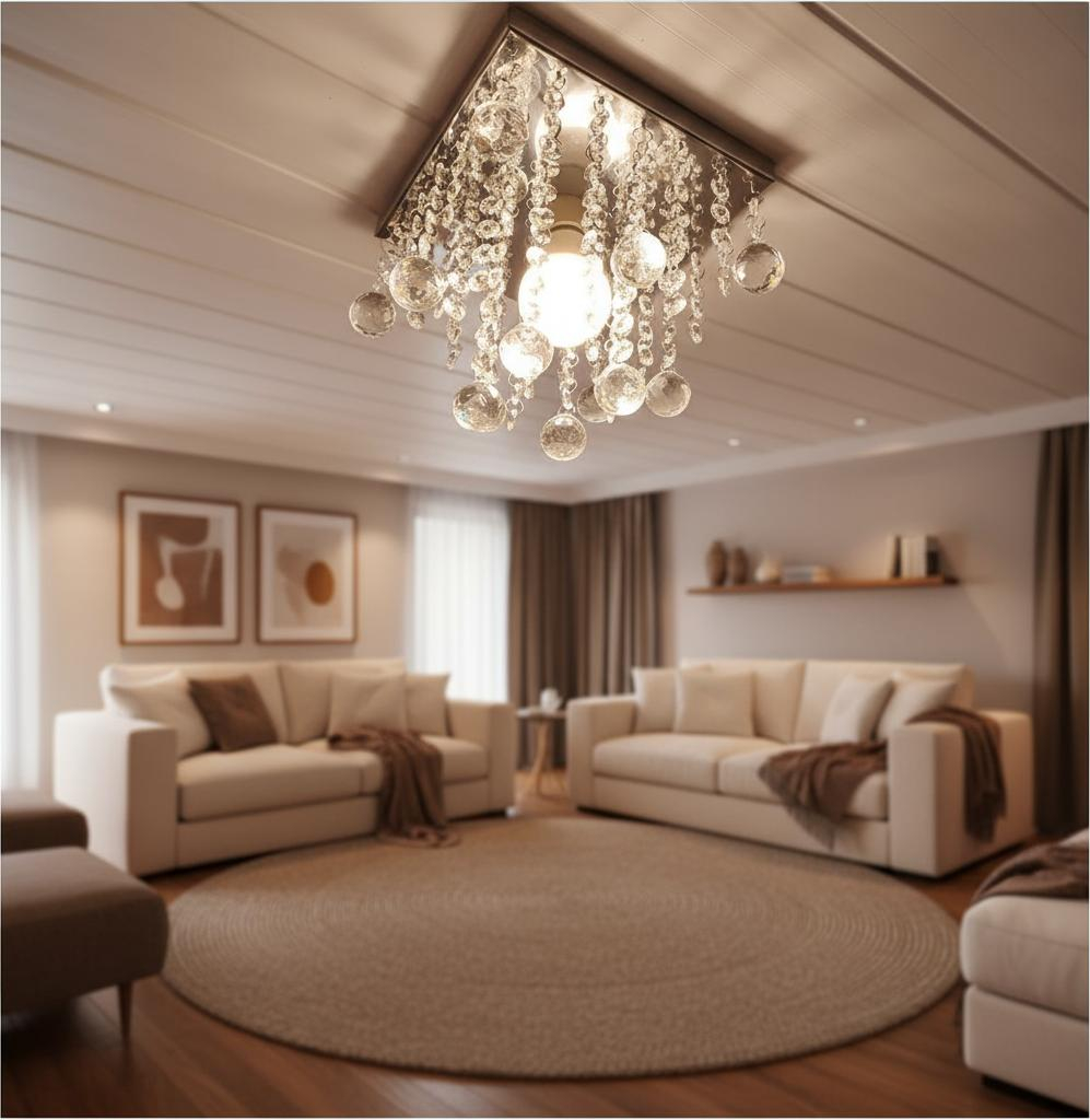 Com base prateada e cristais translúcidos de alto brilho, proporciona um efeito luminoso sofisticado, deixando o ambiente mais aconchegante e refinado.