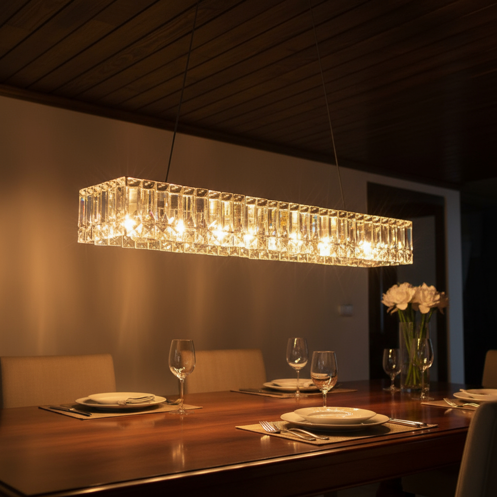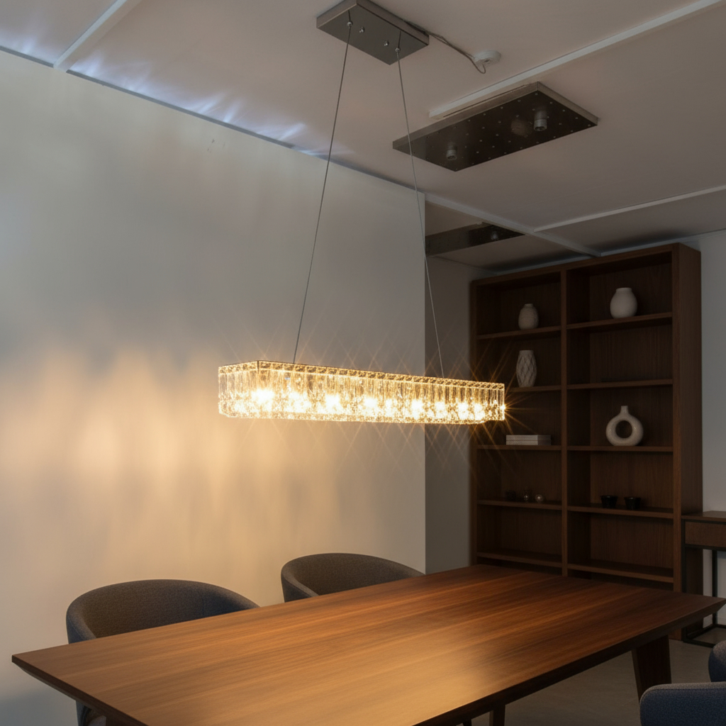 Transforme seu ambiente com sofisticação e alto padrão de acabamento. Este lustre de cristal K9 foi desenvolvido para quem busca elegância, excelente iluminação e um design moderno que valoriza qualquer espaço.